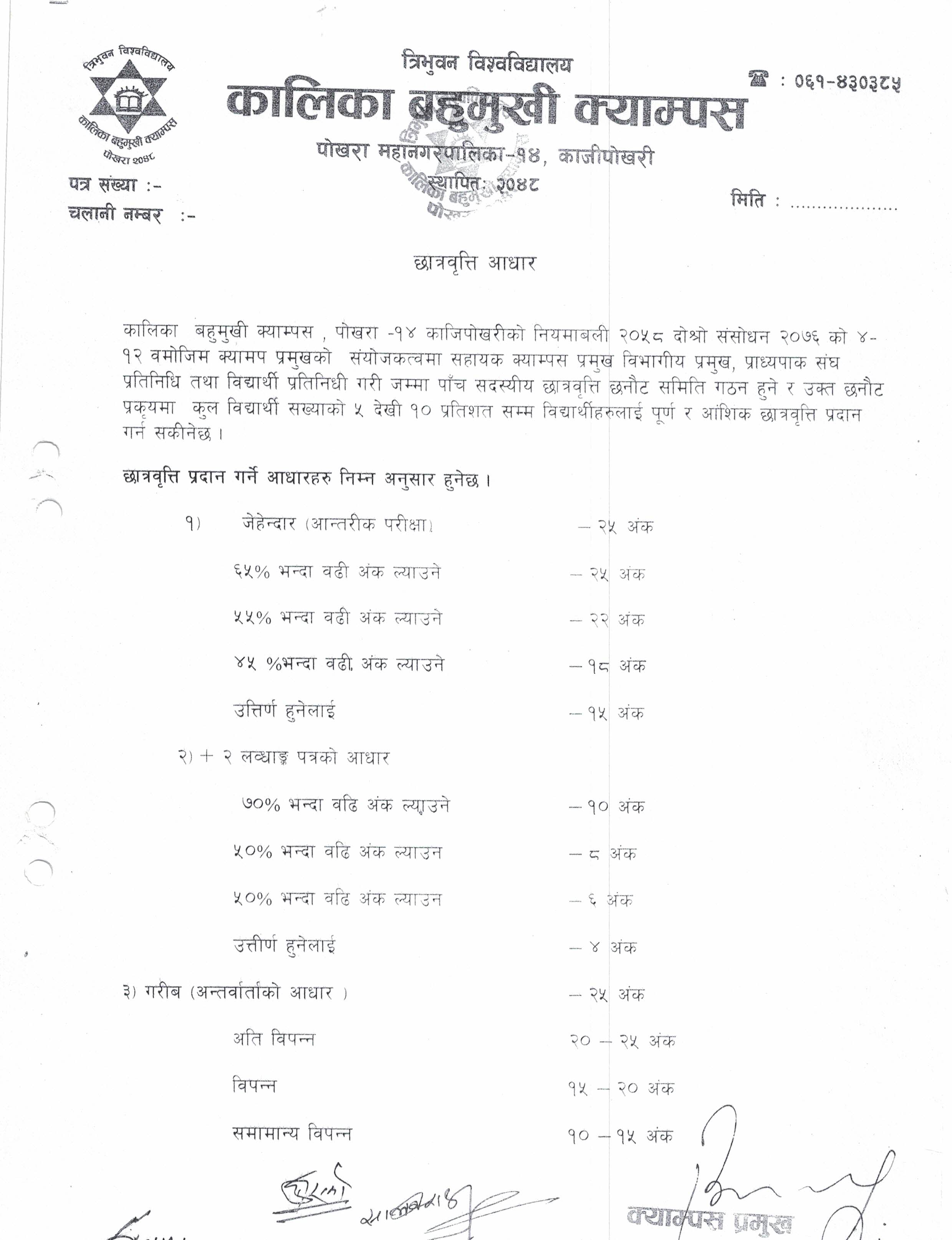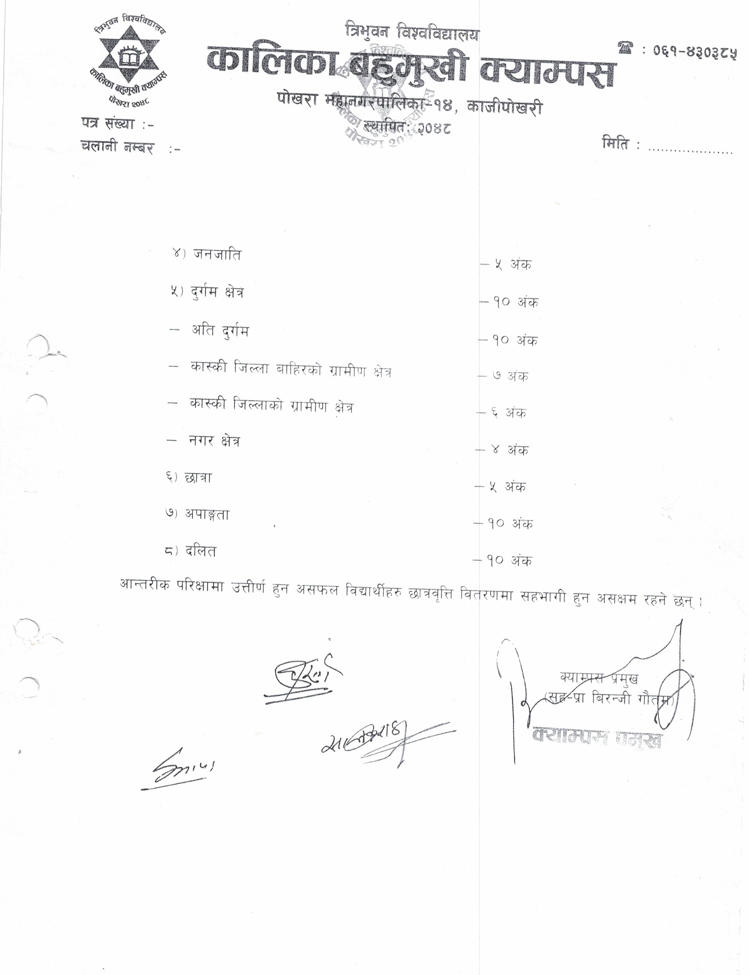 स्नातक तह दोश्रो वर्षके कक्षा संचालन सम्वन्धमा | सूचना तिज गित प्रतियोगिता समय सम्वन्धमा | सूचना स्नातक तह दोश्रो वर्षको नियमित परीक्षा फाराम भर्ने वारे | सूचना छात्रवृत्ति सम्वन्धमा | सूचना तिज गित प्रतियोगिता सम्वन्धमा | सूचना स्नाकोत्तर तह दोश्रो सेमेष्टरको कक्षा संचालन सम्वन्धमा